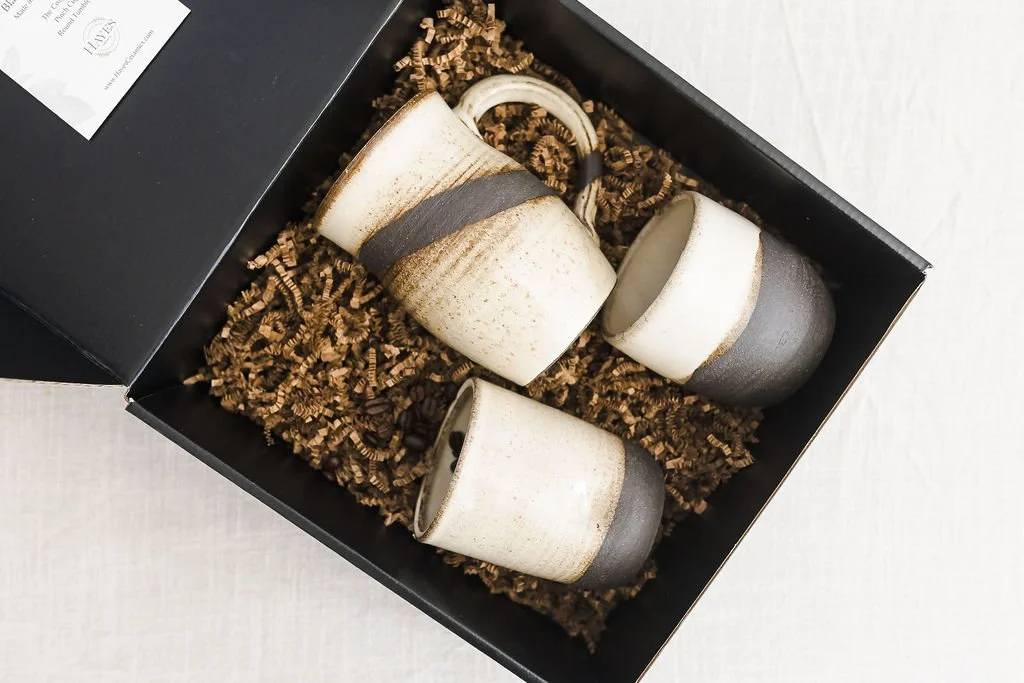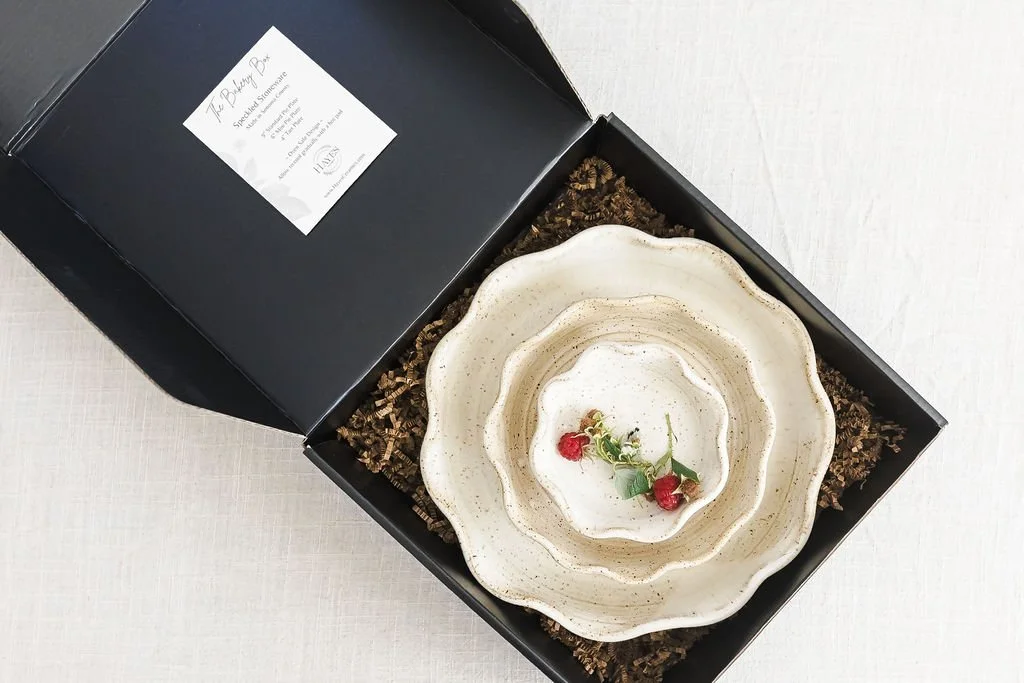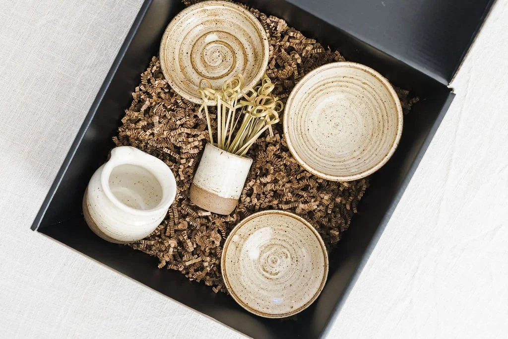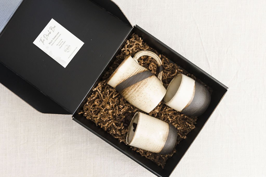 The Garden Box contains 4 designs. Thrown on the wheel with black stoneware.